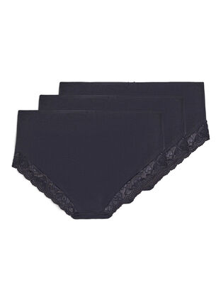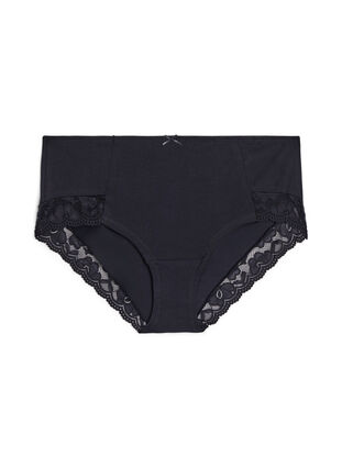 Super fin hipster trusse med regulær taljehøjde og feminine blondekanter bagpå. Trussen er lavet i en komfortabel og strækbar bomuldskvalitet med bløde elastikkanter, som giver en god pasform.