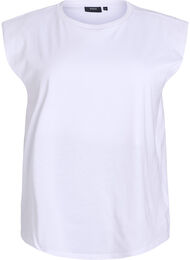Ærmeløs jerseybluse i 100 % bomuld med en regulær pasform. Blusen har en rund halsudskæring og er designet med skulderpuder, der fremhæver skuldrene og giver blusen en flot og markeret silhuet.