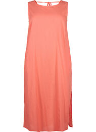 Ærmeløs sommerkjole i midilængde med lommer i siden, rund hals og dyb udskæring bagpå med bindedetalje. Kjolen har en løs og afslappet pasform med slids i siden og fremstillet af et blødt og åndbart bomuldsmix med hør, som gør kjolen ideel til varmere dage.