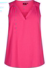 Top uden ærmer fremstillet i et let materiale med 51% genanvendt polyester og tekstur. Toppen har en regulær pasform med slids i siderne, v-udskæring og smock-detaljer, som skaber nogle fine draperinger