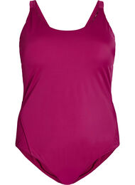 Badedragt med åben ryg-detalje og justerbare stropper, der samles med en ring midt på ryggen. Badedragten har elastik under brystet og udtagelige indlæg, der giver en let formgivende effekt og holder barmen på plads. Badedragten har mesh-lining foran, som giver ekstra støtte og komfort og fremstillet i et klorresistent materiale, der sikrer lang holdbarhed og farvefasthed.