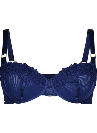 Elegant balconette bh med bøjle og brede, justerbare skulderstropper samt høje sidestykker for maksimal støtte. Bh'en er fremstillet i blødt mesh med feminin blondedetalje og satinbånd på skålene. Bh'en er designet med et ekstra lag mesh i siden af skålene, hvilket giver god støtte og løfter brystet.