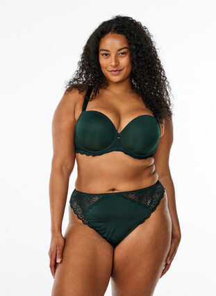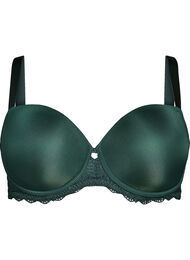 BH med bøjle og formstøbte, let vatterede skåle, som former barmen og skaber en jævn, rund silhuet. Skålene løfter og støtter, skjuler brystvorterne og udjævner eventuelle forskelle i størrelse. BH’en har brede, justerbare stropper, høje sidestykker og en U-formet ryg, som holder stropperne på plads, giver optimal støtte og sikrer en behagelig vægtfordeling. Den glatte overflade gør BH’en usynlig under tøjet, og modellen er afsluttet med fine blondedetaljer under bøjlerne og på ryggen.