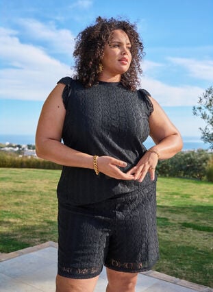Feminine blondeshorts med høj talje. Shortsene har en blød lining og elastisk linning, der sikrer en komfortabel pasform.