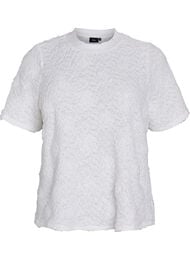 Bluse i et strækbart og let transparent materiale med en flot, struktureret overflade og tredimensionelt blomstermønster. Blusen har korte ærmer, rund hals og en regulær pasform.