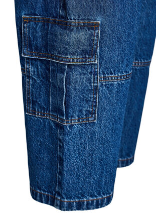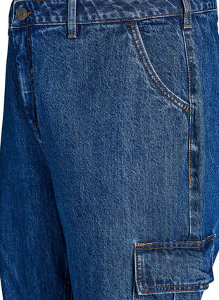 Jeans med straight fit og høj talje i en fast denimkvalitet uden stræk. Buksebenene har samme bredde fra hoften og ned, hvilket skaber en lige og tidløs silhuet. Modellen har cargolommer i siderne, baglommer og skrålommer foran, der giver et funktionelt og cool udtryk. Bukserne lukkes med knap og lynlås og har et elastisk bånd indvendigt i taljen, som kan justeres for en mere personlig og komfortabel pasform.