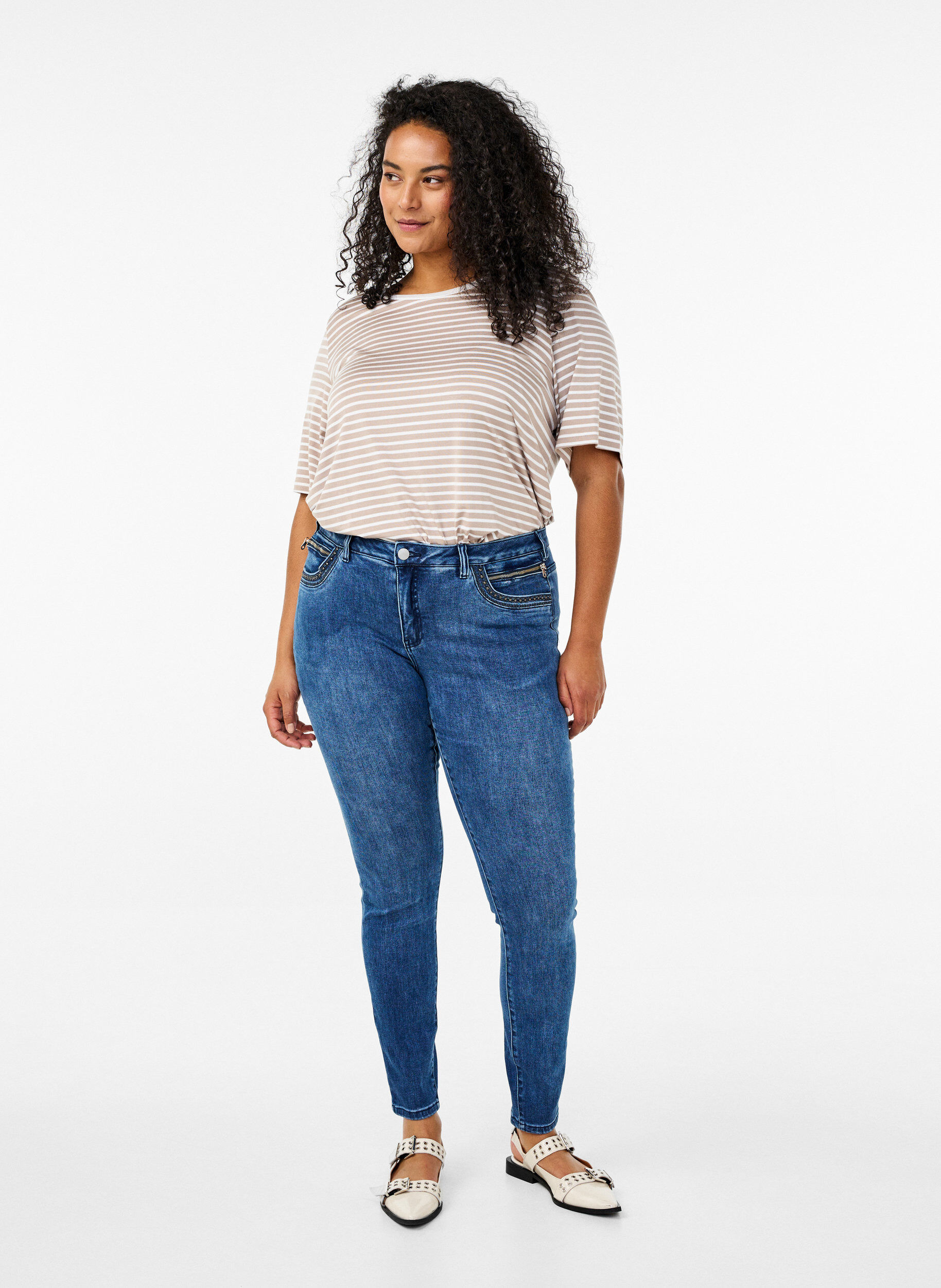 Uanset smag og behag i henhold til det rent stilmæssige, er et velsiddende fit og en god pasform en af de vigtigste ting, når det gælder jeans. Det er der tænkt over i henhold til Sanna jeans fra Zizzi, så du nemt kan skabe det outfit, du ønsker.