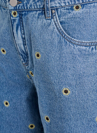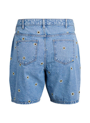 Denim shorts med broderede blomster