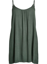 Midikjole med smalle regulerbare skulderstropper og små draperinger ved udskæringen fortil, som giver et fint fald til kjolens løse a-form. Denne kjole indeholder 100% LENZING™ ECOVERO™ Viskose-fibre, som tilfører naturlig blødhed og fald.