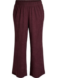 Blød og komfortabel buks i fløjl med wide fit. Modellen har en høj talje med elastisk linning, som giver en fleksibel og behagelig pasform, samt praktiske sidelommer.