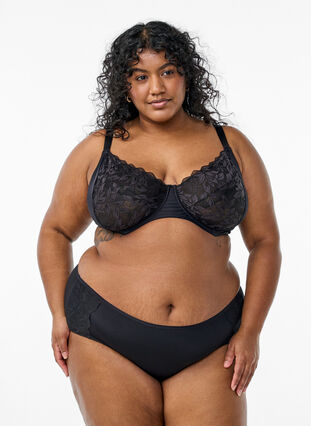 Komfortabel full-cover bh med bøjle og vattering. Bh’en har smukke blonde-skåle med mesh-lining, der dækker hele brystet og giver fuld støtte til barmen, og microfiberindsats i siderne af skålene for ekstra hold og en flot silhuet. De brede, justerbare stropper aflaster skuldrene, og U-ryg-designet sikrer, at stropperne bliver på plads. Bh'en har microfiber bagpå med mesh-lining og høje sidestykker for ekstra støtte, hvilket giver maksimal komfort til en stor eller tung barm.