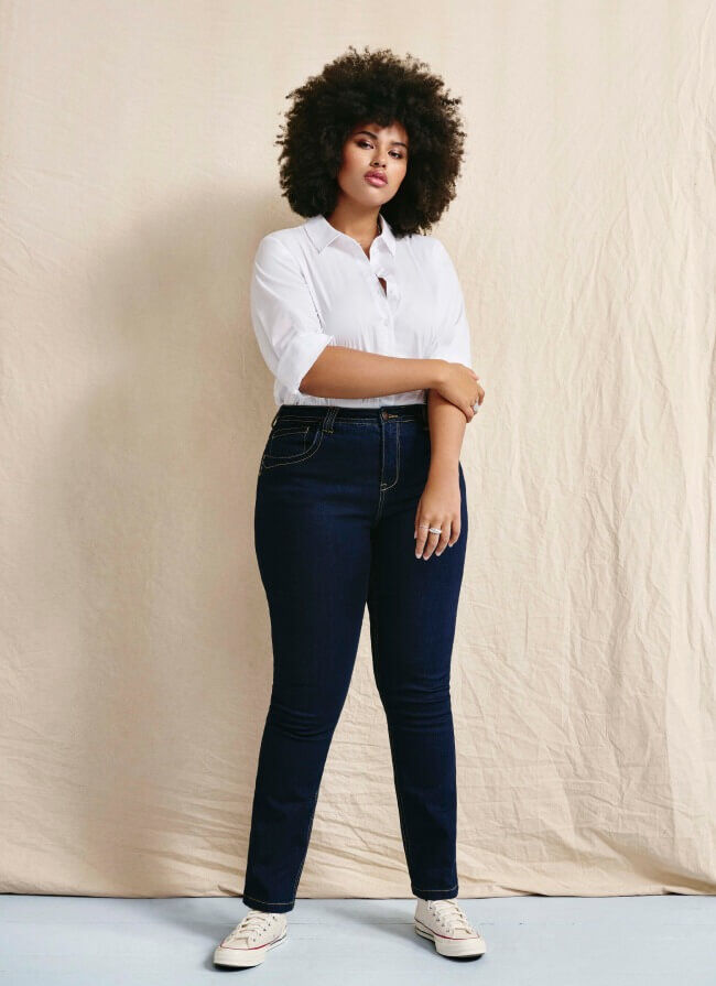 Hos Zizzi er vi overbeviste om, at pasform er altafgørende, når det kommer til jeans. Derfor giver vi dig her en jeans-størrelsesguide til kvinder med former, hvor vi beskriver vores jeans-modeller og deres størrelser, så du nemmere kan finde den rigtige størrelse og pasform.