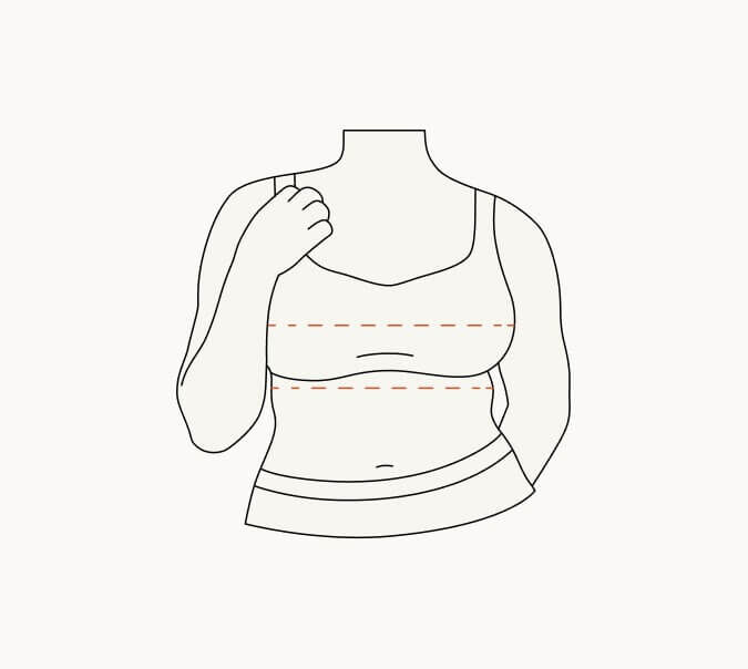 Mål med dit målebånd omkring det smalleste sted lige under brystet. Målebåndet skal ligge vandret og tæt på kroppen, og det skal være forholdsvis stramt.
