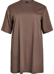 Knælang t-shirtkjole i en blød jerseykvalitet af 100% bomuld med en løs og komfortabel pasform. Kjolen har et enkelt, minimalistisk design med rund hals og korte ærmer.