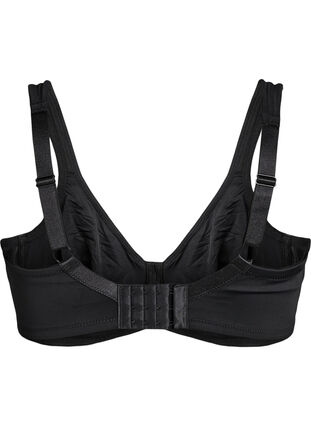 Komfortabel BH med bøjle og formstøbte skåle uden vattering, som løfter og former barmen naturligt og giver medium støtte. BH’en har brede, polstrede stropper, der effektivt aflaster skuldrene, og en U-formet ryg, der giver ekstra støtte og sikrer, at stropperne holdes på plads. Et ekstra sidestykke under armene sørger for en behagelig, stabil og støttende pasform.