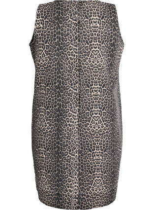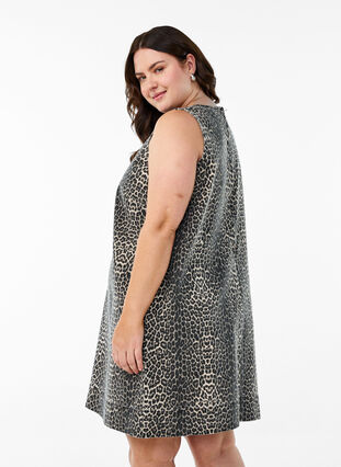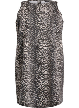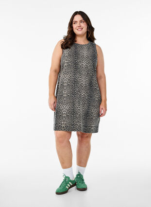 Kort denimkjole i 100% bomuld med leopardprint. Kjolen er ærmeløs og har en rund halsudskæring med en skjult lynlås i nakken samt en regulær pasform.