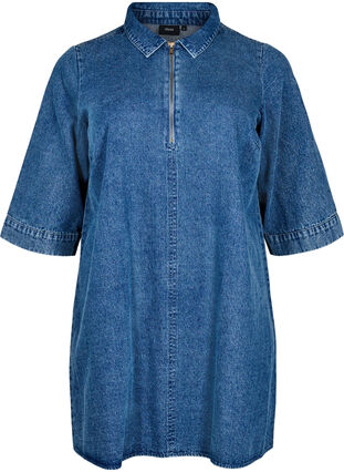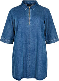 Kort denimkjole med lynlås og 3/4 ærmer