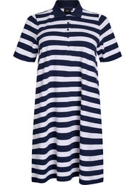 Kort polokjole i blød og strækbar bomuldsjersey. Kjolen har en klassisk polokrave, kort knapstolpe, korte ærmer og en komfortabel pasform med A-facon.