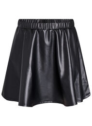 Stilfuld kort nederdel i imiteret læder, designet med en feminin A-facon, der giver et flot fald fra taljen. Nederdelen har en bred, elastiske linning, som sikrer en behagelig pasform.