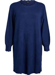 Komfortabel knælang strikkjole med en afslappet pasform i et varmt og blødt materiale, som indeholder 94 % genanvendt polyester. Kjolen har en rund hals med en fin bølget kant, som også går igen ved ærmeafslutningerne og tilfører et feminint touch. Modellen har lange ærmer med let volumen og brede ribkanter, og forneden er der slidser i siderne.