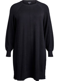 Knælang strikkjole med dekorative midtersømme foran og på ærmerne. Modellen har rund hals, lange raglanærmer og en afslappet pasform med brede ribkanter og små slidser i siderne. Denne strikkjole indeholder 50% LENZING™ ECOVERO™ Viskose-fibre, som tilfører naturlig blødhed og fald.