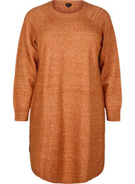 Kort kjole i blødt og let strikket materiale med 64% genanvendte fibre og 6% uld, som giver en lun og behagelig fornemmelse. Modellen har rund hals, lange raglanærmer og ribkanter ved ærmer, hals og bund samt en løs pasform med afrundet kant forneden.