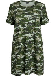 Kort t-shirtkjole med rund hals, korte ærmer og en afslappet pasform. Kjolen er lavet i en blød og strækbar bomuldsjersey og fås i varianter med både leopard- og camouflageprint.