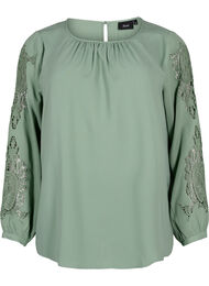 Langærmet bluse med crochet detaljer