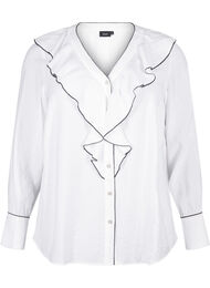 Langærmet skjortebluse i viskose med flæse