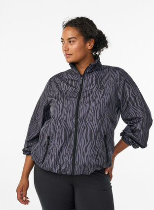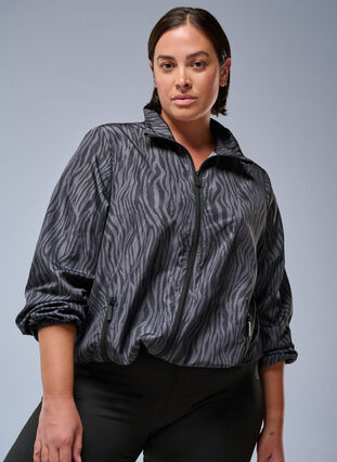 Let jakke i sporty design med cool zebraprint, gennemgående lynlås og høj hals, der beskytter mod vind. Elastik i ærmeafslutningerne sikrer komfort, og justerbare bånd i bunden giver mulighed for en perfekt pasform. Ideel til aktive dage og udendørs træning.