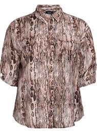 Løs skjorte i let og åndbart materiale med 14% hør og trendy dyreprint. Skjorten har en klassisk krave, brystlommer med klap og gennemgående knaplukning. Ærmerne kan rulles op og fastgøres med knapstrop for et mere afslappet look. Denne skjorte indeholder 69% TENCEL™ Lyocell-fibre, som er naturligt blødt og glat at røre ved.