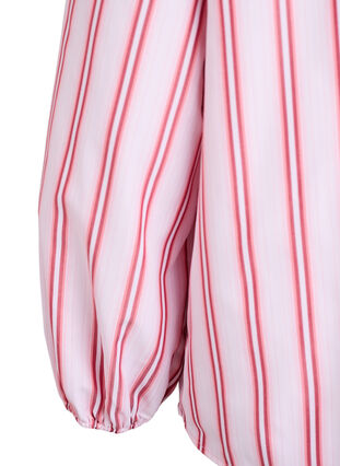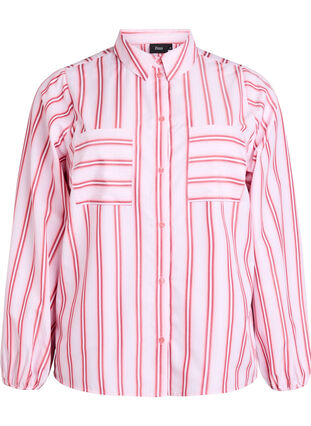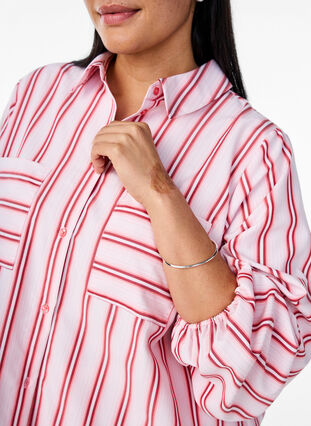 Løs skjorte med flot stribet mønster i et let og glat materiale, som føles behageligt mod huden. Skjorten har en klassisk krave, gennemgående knaplukning, brystlommer, samt lange ærmer med elastikafslutning.