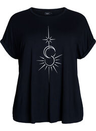 Nat-t-shirt i en blød og strækbar jerseykvalitet af viskose med trykt motiv. T-shirten har korte ærmer med opsmøg, rund halsudskæring og en en løs pasform.