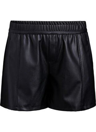 Shorts i imiteret læder med en løs og komfortabel pasform. Shortsene har en høj talje med elastisk linning, sidelommer og en lukkelignende syning foran.