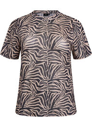 Superblød bluse i transparent, strækbart mesh med tætsiddende pasform. Modellen har korte ærmer og rund hals.