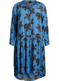 Midikjole med flot all-over print, fremstillet i en skøn viskosekvalitet. Kjolen har lange ærmer med manchet, v-udskæring og knapper på overdelen samt en skæring, som giver et flot fald til den løse pasform. Kjolen er lidt længere bagtil. Denne kjole indeholder 51 % LENZING™ ECOVERO™ Viskose-fibre, som tilfører naturlig blødhed og fald.