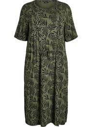 Blød og komfortabel jerseykjole i en strækbar viskosekvalitet med all-over print. Kjolen er midilang og har korte ærmer, rund halsudskæring og en regulær pasform med fastsyet bindebånd i taljen. Denne kjole indeholder 95% LENZING™ ECOVERO™ Viskose-fibre, som tilfører naturlig blødhed og fald.