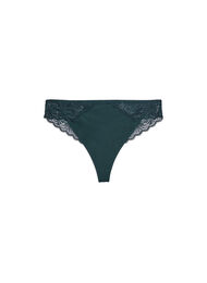Elegant g-streng trusse i blød og glat mikrofiber med regulær talje, høj benskæring og en minimal dækning bagpå. Trussen har en bomuldsforet kile og dekorative blondedetaljer foran og i siderne.