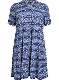 Kort kjole med v-udskæring og korte ærmer. Kjolen har en løs pasform med rynkede skæringer, der skaber et feminint fald og fremstillet i et let og blødt materiale med et flot all-over print.