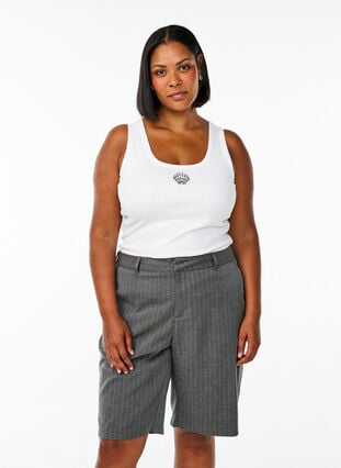 Nålestribede bermudashorts i habitstil, fremstillet i et blødt og strækbart materiale. Shortsene har høj talje, løs pasform og lukkes med hægte og lynlås foran. Designet med skrålommer i siderne, pyntelommer bagpå og bæltestropper i linningen.