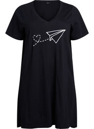 Komfortabel natkjole med v-hals, korte ærmer og en løstsiddende og behagelig pasform med a-formet design. Natkjolen er lavet af 100% økologisk bomuld med et simpelt print.