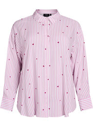 Natskjorte i en let og blød viskosekvalitet med stribet design og små hjerter, som giver et sødt og feminint udtryk. Modellen har en løs og behagelig pasform med klassisk skjortekrave, knaplukning foran og lange ærmer med manchetter. Denne natskjorte indeholder 100% LENZING™ ECOVERO™ Viskose-fibre, som tilfører naturlig blødhed og fald.
