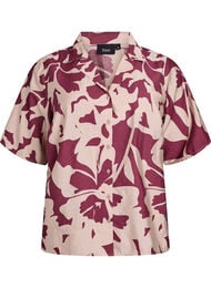 Kortærmet skjortebluse med all-over print, reverskrave og V-udskæring samt regulær pasform med gennemgående knapper. Denne skjortebluse indeholder 80% LENZING™ ECOVERO™ Viskose-fibre, som tilfører naturlig blødhed og fald.