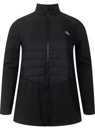 Sportscardigan i strækbart materiale med blød inderside og quiltede detaljer. Cardiganen lukkes med lynlås, har høj hals og en komfortabel, tætsiddende pasform.