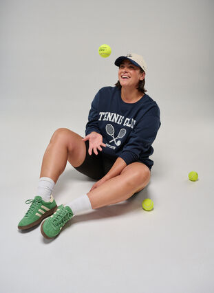Sweatshirt med sporty, tennis-inspireret print på fronten, rund hals og lange ærmer. Modellen har klassiske ribkanter ved ærmer og bund, en løs og komfortabel pasform og er fremstillet i en blød kvalitet med børstet inderside.