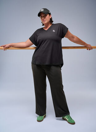 Stilrene træningsbukser i et blødt og super strækbart materiale med en komfortabel pasform og let svaj forneden, som skaber en elegant silhuet. Bukserne har regulær talje og en bred, glat linning uden generende detaljer. De diskrete sidelommer med lynlås tilføjer funktionalitet, mens en stikningsdetalje foran understreger det klassiske udtryk og giver et pænt, bukseinspireret look.