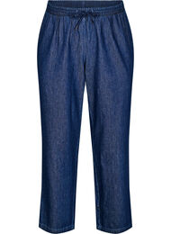 Jeans i 100% bomuld med høj talje og en afslappet pasform med lige ben. Bukserne har sidelommer og en elastisk linning med justerbar snøre.