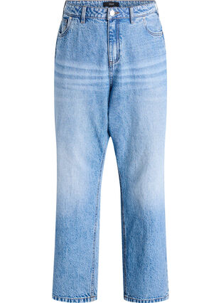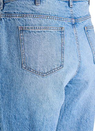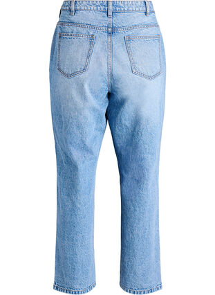 Jeans med straight fit, der giver en lige silhuet fra hoften og ned. Modellen har høj talje med indvendigt, justerbart elastikbånd, traditionelt 5-lomme-design samt knap- og lynlåslukning foran. Fremstillet i slidstærk denim af 100 % bomuld uden stræk med en lys, let vasket finish og vandrette, affarvede striber over lår og hofter.