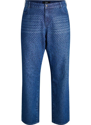 Straight fit jeans med rhinsten og høj talje