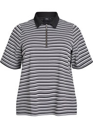 Kortærmet poloshirt med krave og regulær pasform. Poloshirten er fremstillet i et strækbart materiale med et flot, stribet design.